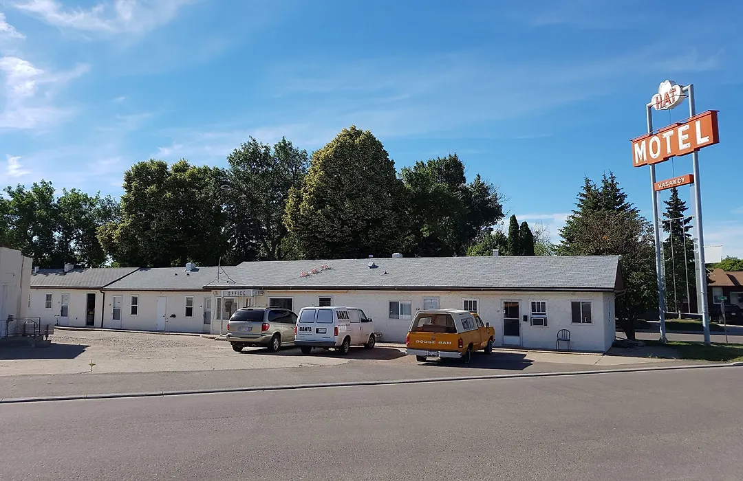2つ星Hat Motel メディシンハットからは,から徒歩で25分キン・ク-リ-・パ-クへ行きやすいです. メディシンハットのモ-テルは駐車場もあります.